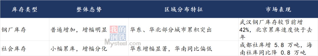 整體來看,盡管節(jié)后供應(yīng)將逐步回升,但受利潤約束及碳減排政策中長期影響,鋼廠復(fù)產(chǎn)節(jié)奏整體偏緩,短期產(chǎn)量仍處于低位,對價(jià)格形成階段性支撐。三、庫存情況:廠庫累積為主,區(qū)域分化顯著